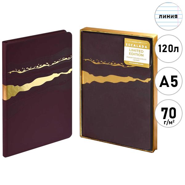 Ежедневник недатированный А5 146*211 искусственная кожа Феникс 120л Escalada Софт-тач Бордовый, линия, тиснение 3D-фольгой, кремовый офсет 70г/м2, печать в 1 краску, ляссе, закругленные углы, справочная информация, подарочная упаковка, подходит под горячее тиснение, фольгу