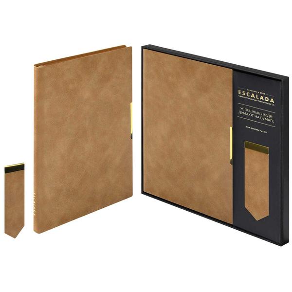 Набор подарочный Ежедневник недатированный А5 146*211 искусственная кожа+закладка для книг Феникс 120л Escalada Бакстер Бежевый, линия, кремовый офсет 70г/м2, печать в 1 краску, 2 ляссе, справочная информация, цветной срез, закладка для книг 35*100м, подарочная упаковка, подходит под горячее тиснение, фольгу