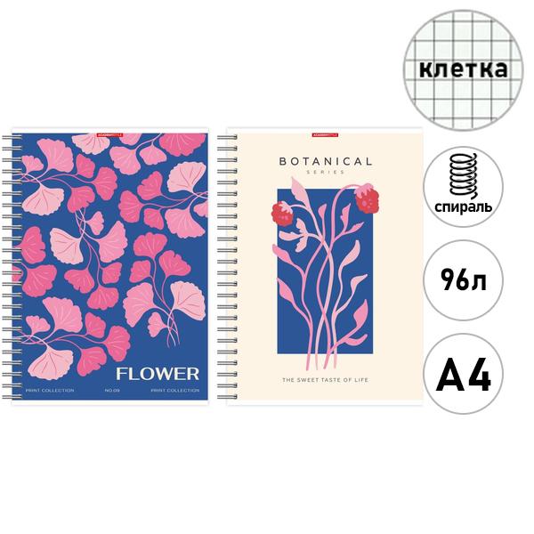 Тетрадь спираль А4 96л клетка Академия Групп Флора, офсет, обложка - мелованный картон, двойной выборочный УФ-лак, 2 дизайна в спайке