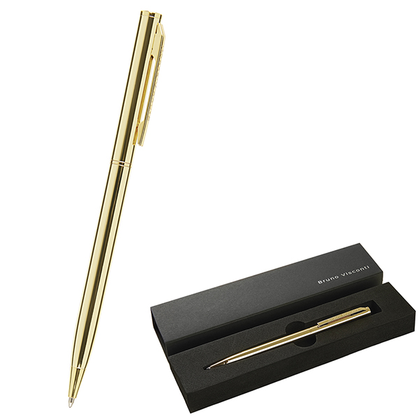 Ручка подарочная шариковая автоматическая Bruno Visconti Palermo синяя 0,7мм, толщина письма 0,5мм, поворотный механизм, корпус- нержавеющая сталь, цвет корпуса золотой, металлический наконечник, металлический клип, подарочная упаковка