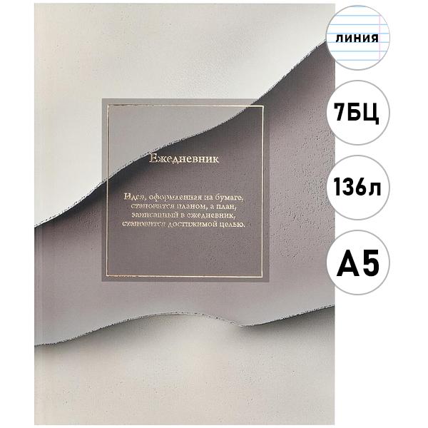 Ежедневник недатированный А5 148*208мм 7БЦ Проф-Пресс 136л Минималистичный ежедневник, лен, линия, матовая ламинация, тиснение фольгой, белый офсет, сшивка