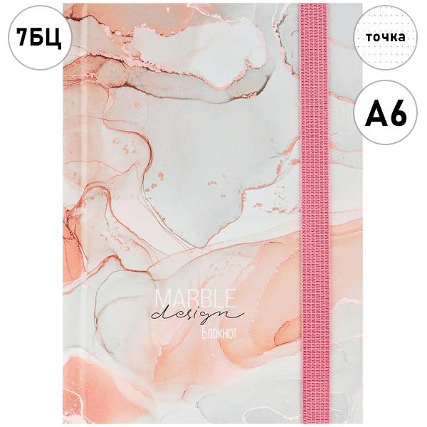Записная книжка МАЛЫЙ ФОРМАТ А6 на резинке 7БЦ 88л Проф-Пресс Светлый мрамор, в точку, обложка - матовый ламинированный картон, сшивка