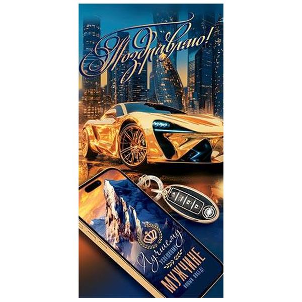 Конверт для денег Мир открыток 2-16 Мужской- Поздравляю! Машина, ночной город, 168*83мм, рельеф, блестки, без текста