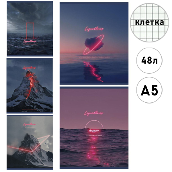 Тетрадь А5 48л клетка ПЗБМ Яркая линия, офсет, на скобе, обложка - мелованный картон, ламинация soft-touch, 5 дизайнов в спайке