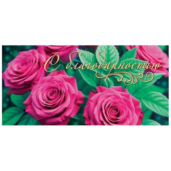 Конверт для денег Мир открыток 4-15 С Благодарностью, розовые розы, 168*83мм, без отделки, без текста