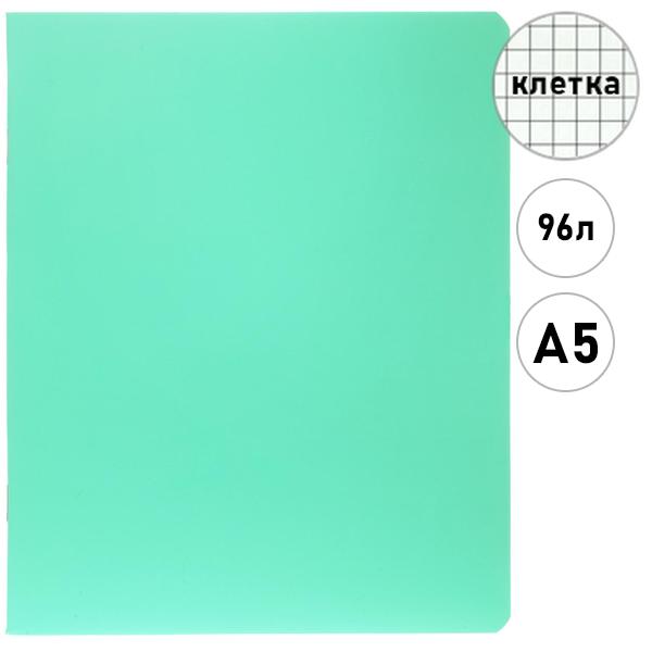 Тетрадь А5 96л клетка Hatber SoloMatte Аквамарин, офсет, на скобе, обложка - мелованный картон, ламинация soft-touch, запечатанный титульный лист, скругленные углы