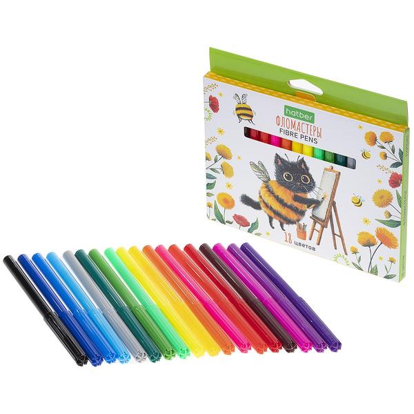 Фломастеры Hatber ECO Жж-Мяу 18цв круглые, вентилируемый колпачок, картонная упаковка, европодвес
