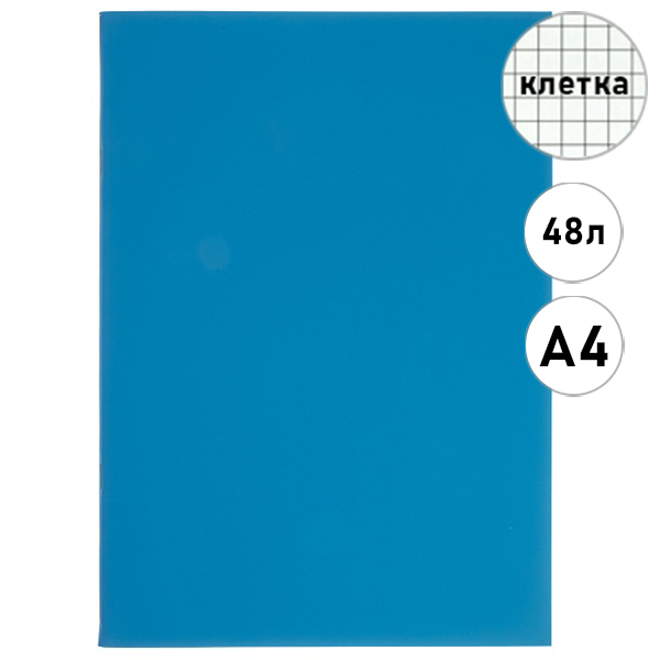 Тетрадь А4 48л клетка Hatber SoloMatte- Небесная лазурь, офсет, на скобе, обложка - мелованный картон, ламинация soft-touch, запечатанный титульный лист, 1 дизайна в коробке