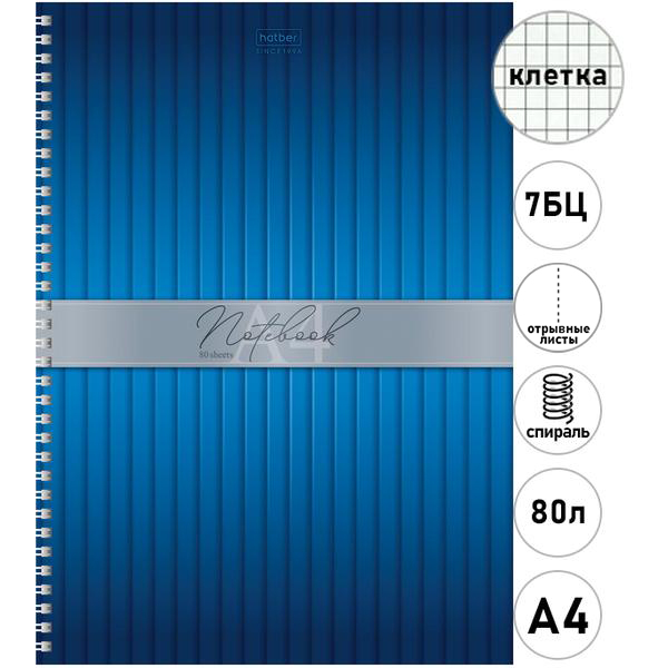 Тетрадь 7БЦ спираль А4 80л клетка Hatber Plisse, офсет, обложка - мелованный картон, глянцевая ламинация, перфорация, 1 дизайн в спайке