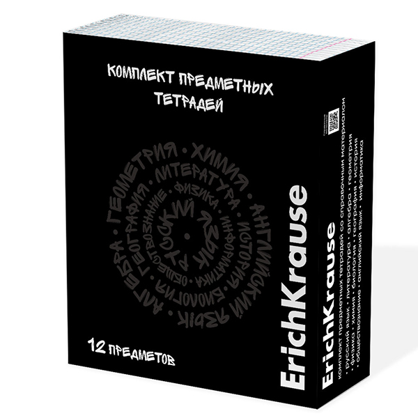 Комплект предметных тетрадей А5 48л Erich Krause Noir, офсет, обложка - мелованный картон, скоба, скругленные углы, 12шт в упаковке, со справочным материалом, в пленке
