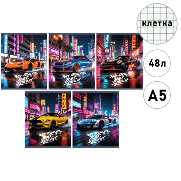 Тетрадь А5 48л клетка Эксмо No Rules, офсет, на скобе, обложка - мелованный картон, ламинация Chameleon, скругленные углы, 5 дизайнов в спайке