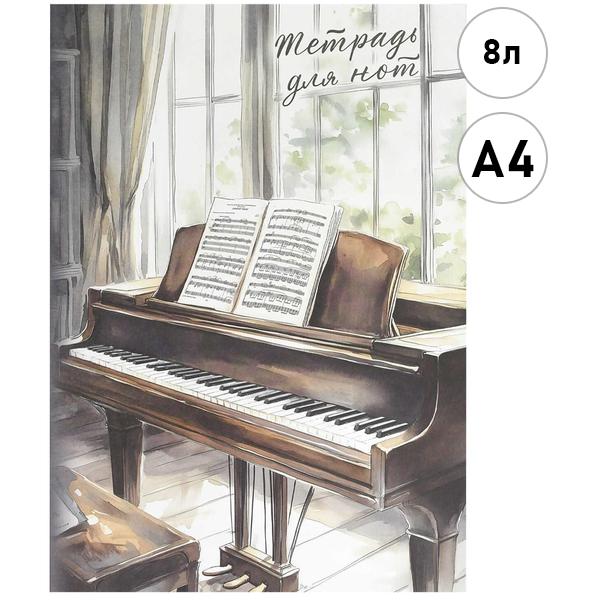 Тетрадь для нот Феникс А4 8л Рояль у окна, обложка- офсетная бумага, офсет, на скобе