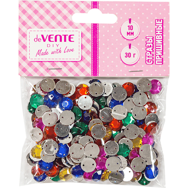 Стразы пришивные deVente Ассорти, круглые 10мм, акриловые, пластиковый пакет с европодвесом