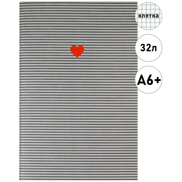 Блокнот МАЛЫЙ ФОРМАТ А6+ 32л Феникс Сердечко на полосках, клетка, на скобе, обложка - мелованный картон, матовая ламинация, 120*185мм