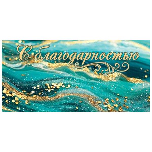 Конверт для денег Мир открыток 2-16 С Благодарностью! Бирюзовый мрамор с золотом, 168*83мм, блестки, рельеф, без текста