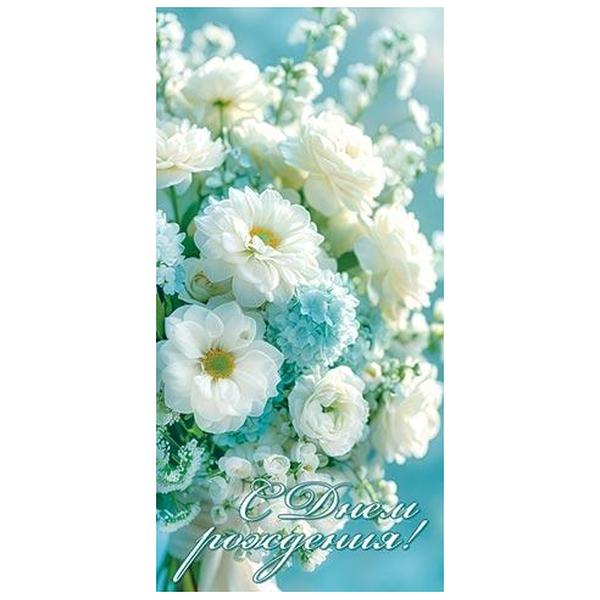 Конверт для денег Мир открыток 4-15 С Днем Рождения! Белый букет цветов, 83*168мм, без отделки, без текста