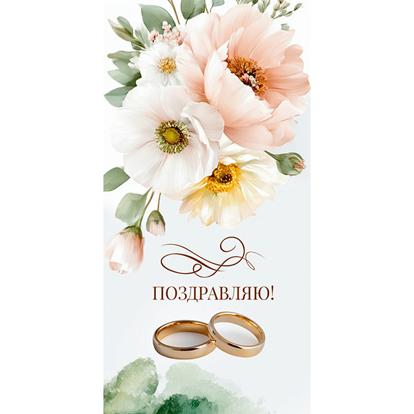 Конверт для денег Миленд Свадьба- Поздравляю, Нежные цветы, 164*85мм, золото/серебро