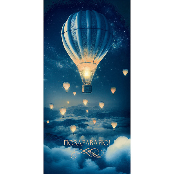 Конверт для денег Миленд Поздравляю! Полет в ночи, 164*85мм, золото/серебро