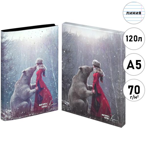 Ежедневник недатированный А5 146*211мм искусственная кожа Феникс 120л Escalada Наппа Маргарита Карева Маша и медведь, линия, тиснение фольгой, кремовый офсет 70г/м2, печать в 1 краску, полноцветная печать, 1 ляссе, цветной срез, справочная информация, подарочная упаковка