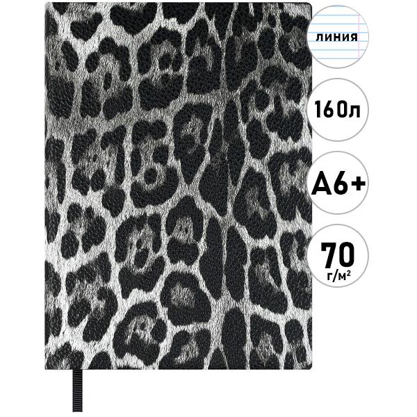 Ежедневник недатированный МАЛЫЙ ФОРМАТ А6+ 126*174мм искусственная кожа Феникс 160л Escalada Леопард Серый, линия, тиснение фольгой, кремовый офсет 70г/м2, печать в 1 краску, 1 ляссе, цветной срез, справочная информация, индивидуальная упаковка