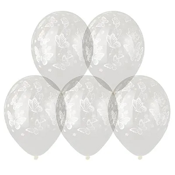Шар латексный шелкография 14 /36см Бабочки, прозрачный кристалл, 1 дизайн