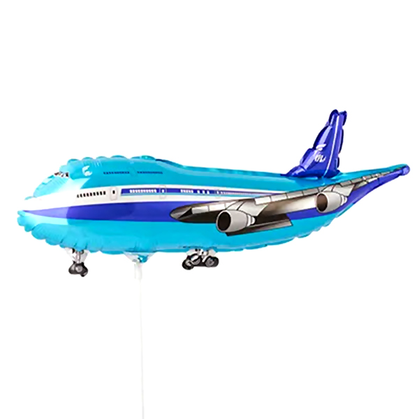 Шар фольгированный фигурный 17 /43см Самолет синий, крепится с помощью розетки на палочку (в комплект не входят)
