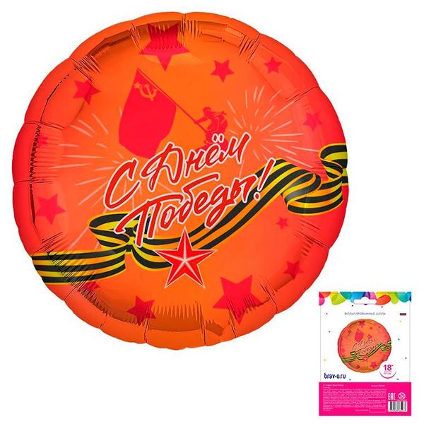 Шар фольгированный Браво 18 /46см Круг С Днем Победы!