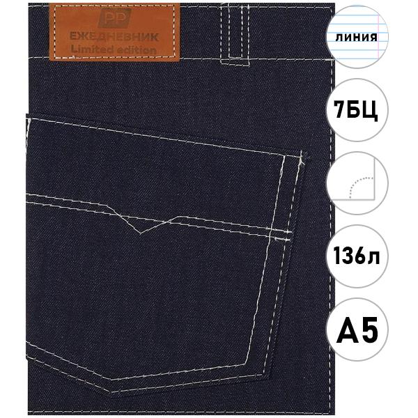 Ежедневник недатированный А5 152*224мм 7БЦ Проф-Пресс 136л Черный, обложка- ткань, линия, белый офсет, печать в 1 краску, лясе, цветной срез, перфорация углов, справочная информация