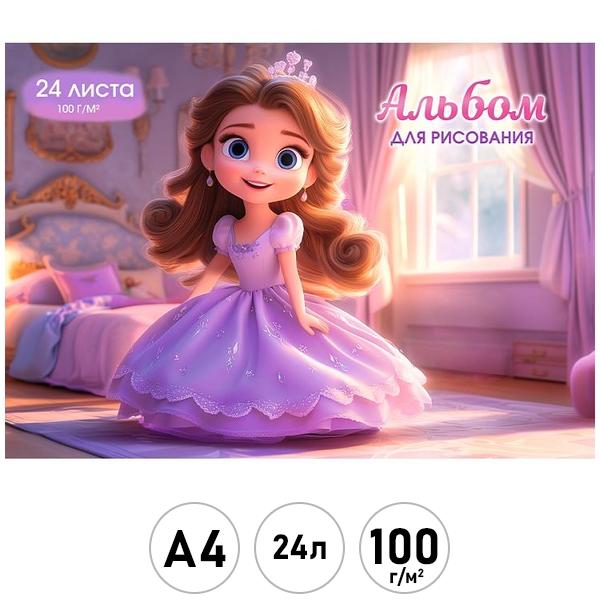 Альбом А4 24л Проф-Пресс Красивая принцесса- 2, на скобе, обложка- мелованная бумага, блок- офсет 100г/м2, 1 дизайн в коробке