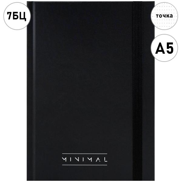 Записная книжка А5 на резинке 7БЦ 72л Проф-Пресс Классический черный, в точку, обложка - матовый ламинированный картон, сшивка