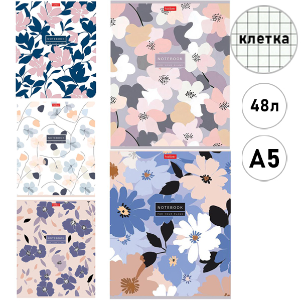 Тетрадь А5 48л клетка Hatber Музыка цветов, офсет, на скобе, обложка - мелованный картон, тиснение, 3 дизайна в спайке