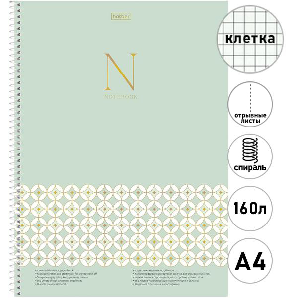 Тетрадь 7БЦ спираль А4 160л клетка Hatber Графика-N, офсет, обложка - мелованный картон, глянцевая ламинация, перфорация, 4 цветных разделителя, индивидуальная упаковка