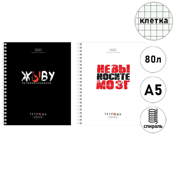 Тетрадь спираль А5 80л клетка Hatber Проект Капланопись Выпуск №1, офсет, обложка - мелованный картон, 2 дизайна в спайке
