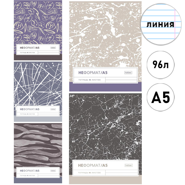 Тетрадь с пластиковой обложкой А5 96л линия Hatber НеФормат, офсет, на скобе, 5 дизайнов в коробке