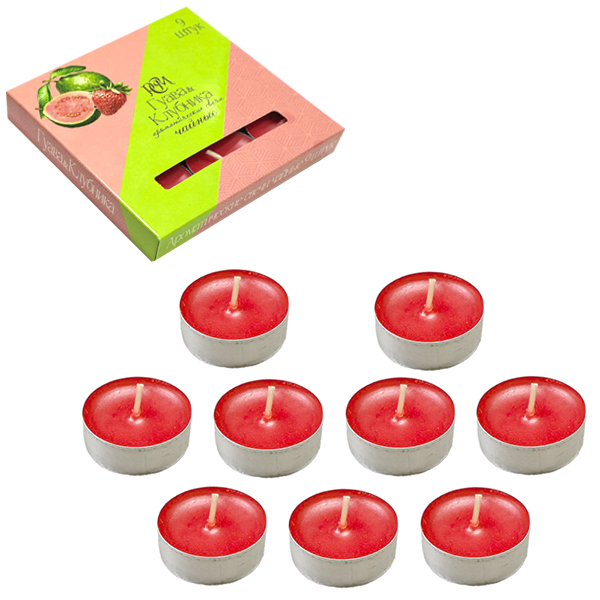 Свеча чайная ароматизированная РСМ 9шт Гуава клубника, 39*12,5мм, время горения 3-4часа, картонная упаковка