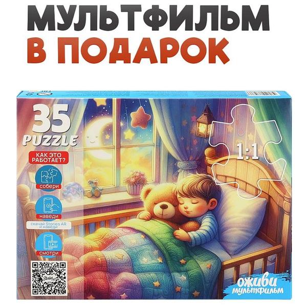 Пазлы Рыжий кот 35элементов Оживи мультфильм. Спокойной ночи 30*21,5см, картонная упаковка 19,7*14,4*3,9см