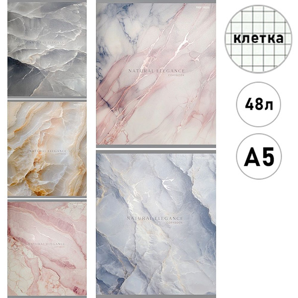 Тетрадь А5 48л клетка Проф-Пресс Красивый мрамор-1, офсет, на скобе, обложка - мелованный картон, твин-лак, 5 дизайнов в спайке
