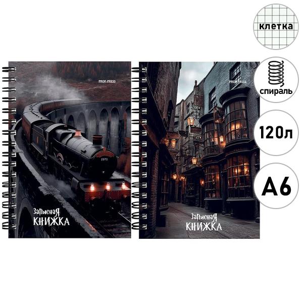 Записная книжка МАЛЫЙ ФОРМАТ А6 спираль 120л Проф-Пресс Школа магии, клетка, обложка - мелованный картон, 2 дизайна