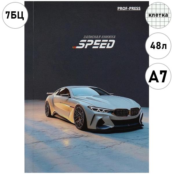 Записная книжка МАЛЫЙ ФОРМАТ А7 7БЦ 48л Проф-Пресс Разные автомобили-19, клетка, обложка - глянцевый ламинированный картон, сшивка, офсет