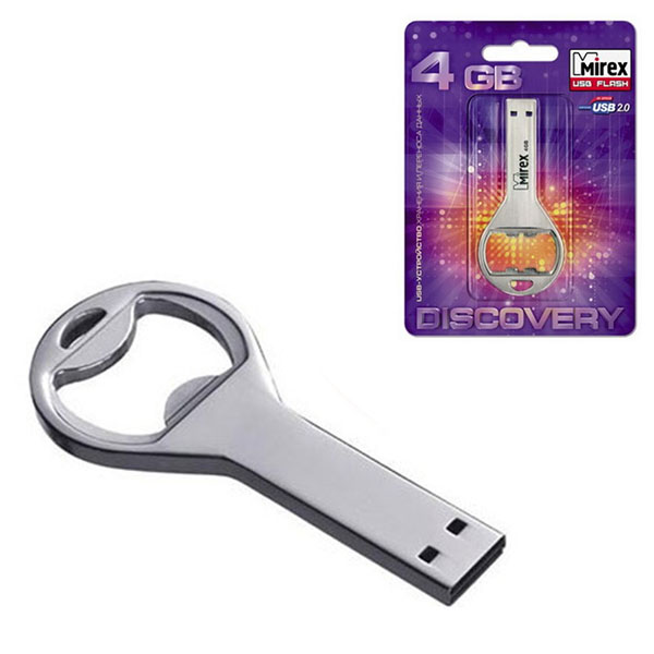 Флеш-диск Mirex 4GB Bottle opener серебряный USB 2.0, металл