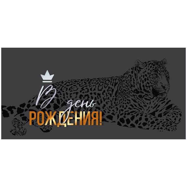 Конверт для денег Мир поздравлений 445 Мужской- В день рождения! Леопард, корона, 168*84мм, золотая фольга, без текста