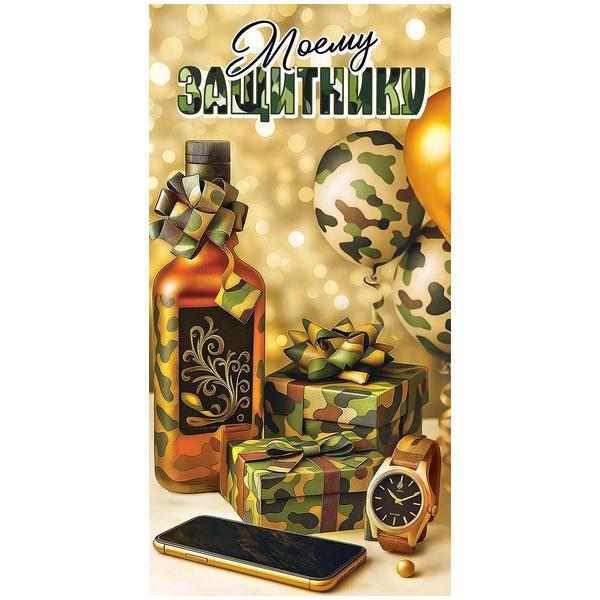 Конверт для денег Праздник 425 Мужской- Моему защитнику, 84*168мм, золотые блестки в лаке, текст