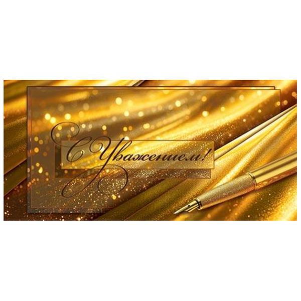 Конверт для денег Мир открыток 2-16 С уважением! Ручка на золотом фоне, 168*83мм, блестки, рельеф, без текста