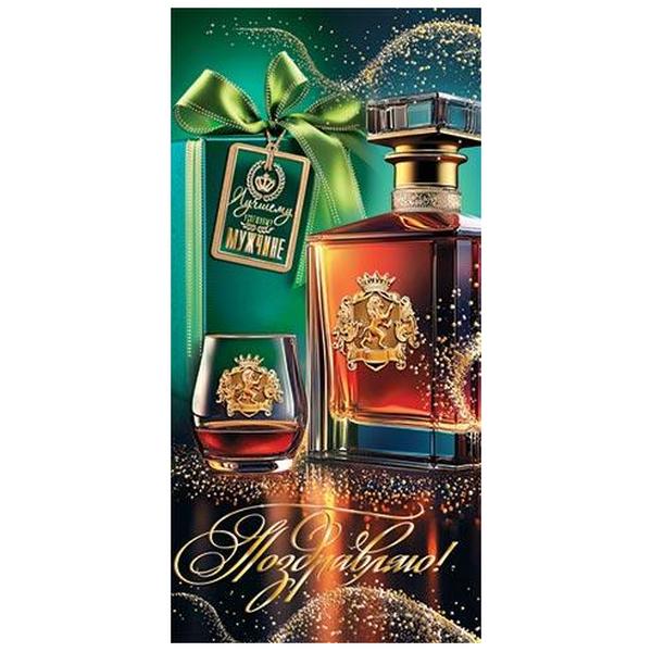 Конверт для денег Мир открыток 2-17 Мужской- Поздравляю! Коньяк, подарок, бант, 85*165мм, золотая фольга, без текста