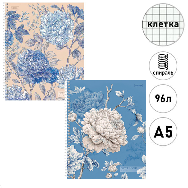 Тетрадь спираль А5 96л клетка Hatber Королевские пионы, офсет, обложка- мелованный картон, матовая ламинация, 2 дизайна в спайке