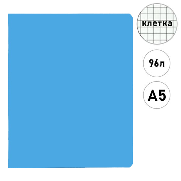 Тетрадь А5 96л клетка Hatber SoloMatte Небесная лазурь, офсет, на скобе, обложка - мелованный картон, ламинация soft-touch, запечатанный титульный лист, скругленные углы