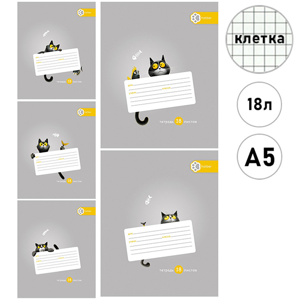 Тетрадь А5 18л клетка Hatber Пушистый философ, офсет, на скобе, обложка - мелованный картон, скругленные углы, 5 дизайнов в спайке