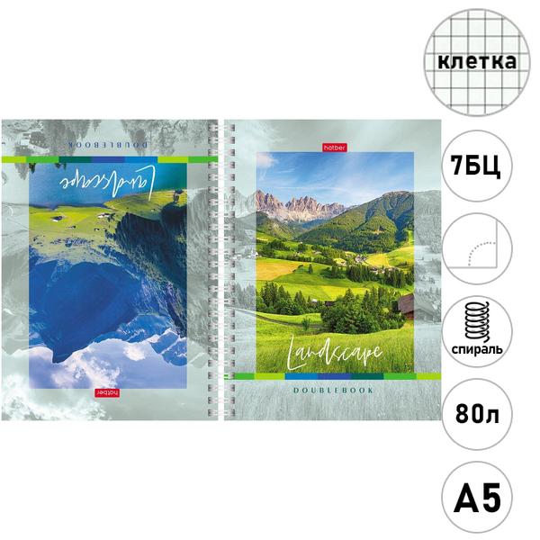 Тетрадь 7БЦ двойная обложка спираль Евро (145*205мм) А5 80л клетка Hatber Горные долины, офсет, обложка - мелованный картон, перфорация, 1 дизайн в коробке