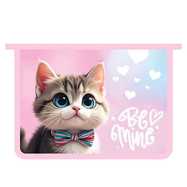 Папка Пчелка А4-29 (325*230*55мм) молния сверху Котик с бантиком, печать на пластике