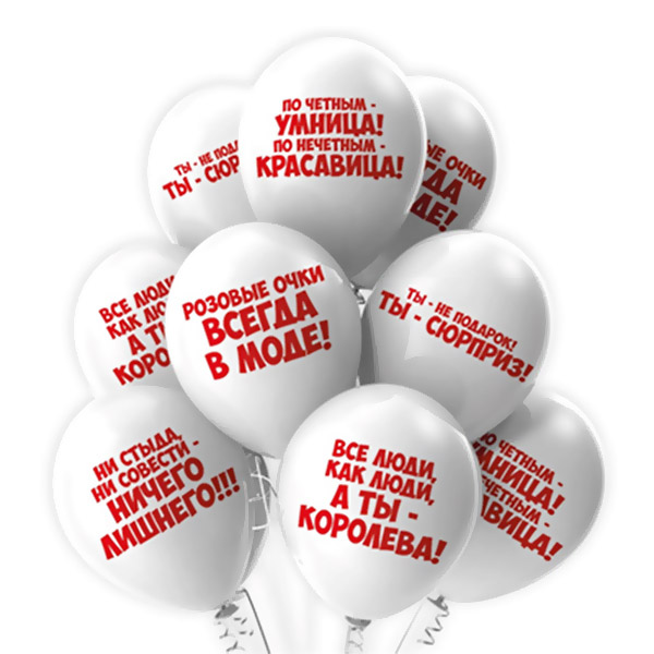 Шар латексный с рисунком 12 /30см Комплимент девушке, белый, 5 дизайнов